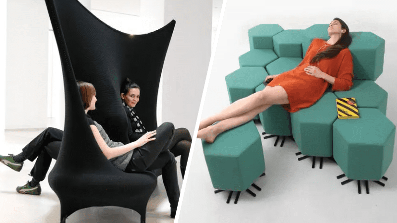 Ένας καναπές που ανεβαίνει στον τοίχο, ένας καναπές με σούπερ ψηλές πλάτες που δημιουργούν κουκούλια για κάθε άτομο, καναπέδες σε σχήμα χείλους, καναπέδες με στέγαστρα για κατοικίδια και πολλές άλλες ιδέες που σίγουρα θα σας εμπνεύσουν βρίσκονται στην παρακάτω.
