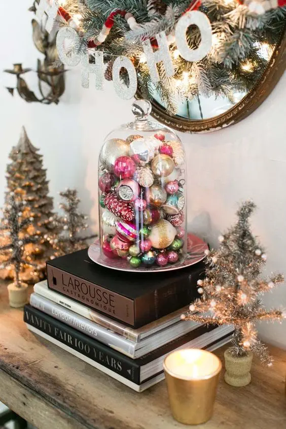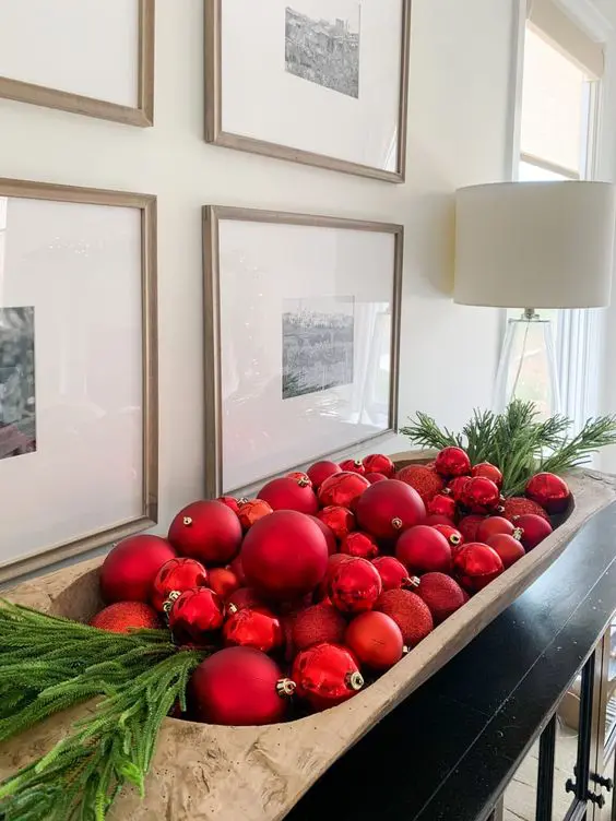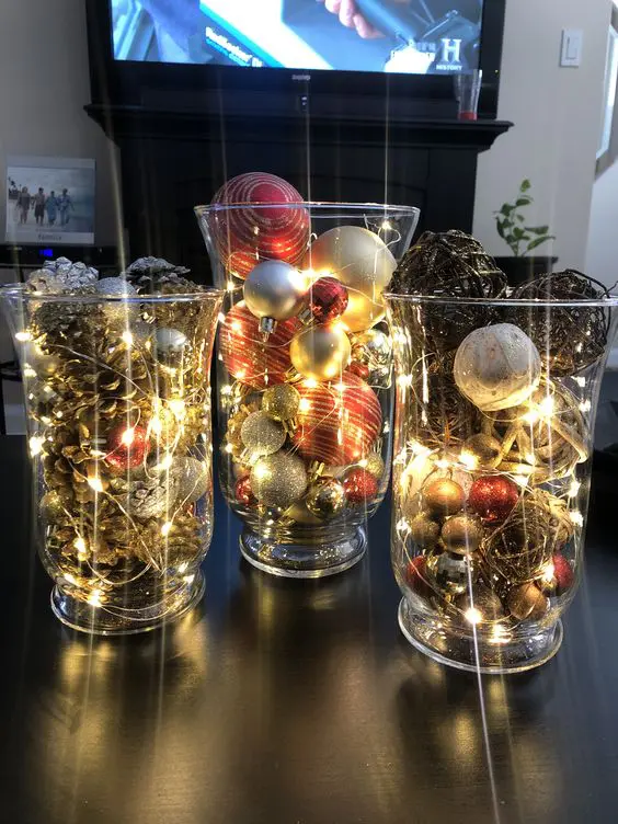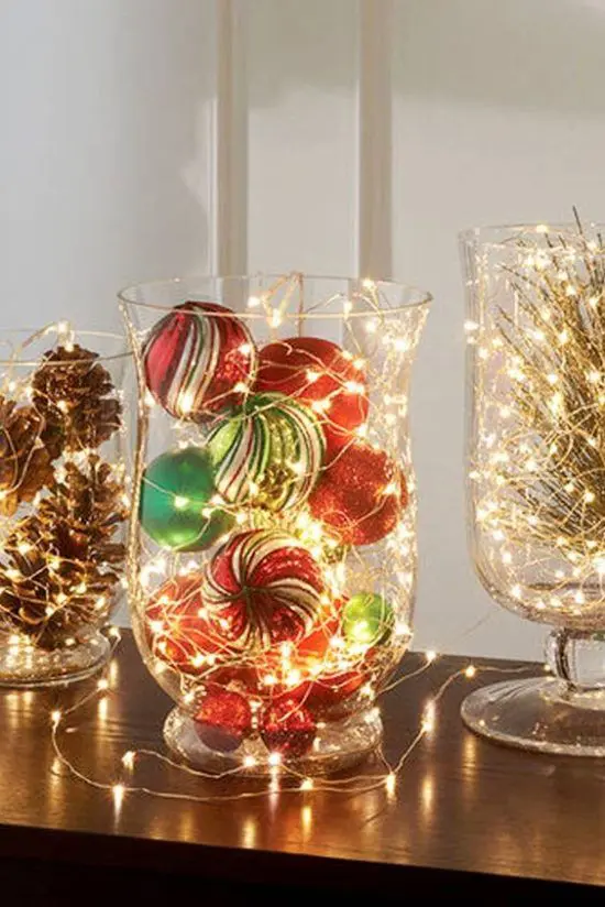 Πρώτα απ ‘όλα, αυτά είναι μπολ ή μεγάλα ποτήρια – απλά πάρτε ένα μπολ οποιουδήποτε είδους και μεγέθους που ταιριάζει με τον χώρο σας και βάλτε τα στολίδια σας μέσα, voila! Μπορείτε να το τοποθετήσετε σε αειθαλή φυτά ή να προσθέσετε φωτάκια εάν θέλετε να τονίσετε τη διάταξη.