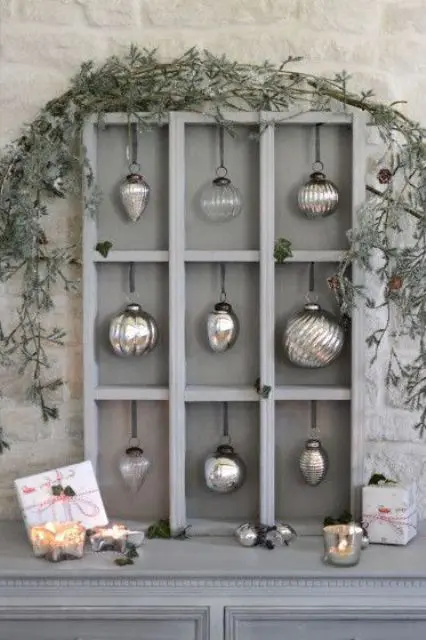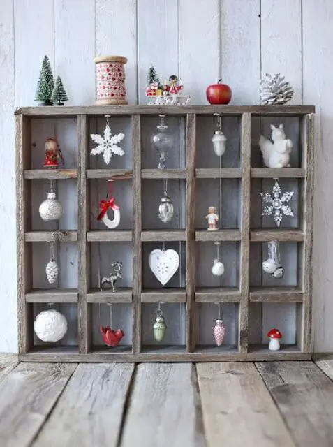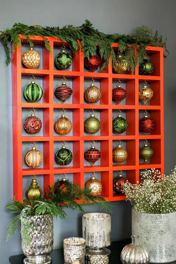 Τα κλοσέ είναι μια άλλη εξαιρετική ιδέα για να δημιουργήσετε μια όμορφη παρουσίαση χριστουγεννιάτικων στολιδιών, μπορείτε επίσης να προσθέσετε φωτάκια μέσα ή απλώς να τα παραλείψετε – αυτή είναι μια έτοιμη επίδειξη στολιδιών.