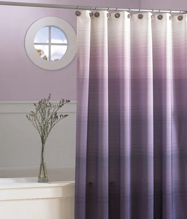 Να θυμάστε ότι αν θέλετε να αγοράσετε αντί να φτιάξετε το τελευταίο σας κομμάτι ombre, υπάρχουν επιλογές! Όπως η ombre μωβ κουρτίνα μπάνιου παρακάτω. Μας αρέσουν οι λεπτές οριζόντιες ζώνες, που προσθέτουν οπτική υφή. [από το  Linens ‘n Things ]