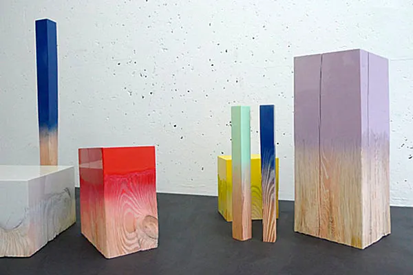 Στη συνέχεια έχουμε το Trift της Judith Seng , μια σειρά από γυαλιστερές επιφάνειες. Το ακατέργαστο ξύλο και το εφέ βαφής που ξεθωριάζουν ολοκληρώνουν την ξεχωριστή εμφάνιση αυτών των έργων τέχνης: