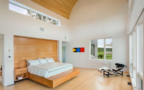 #7 Λευκό υπνοδωμάτιο με ξύλο στο πάτωμα και τον τοίχο