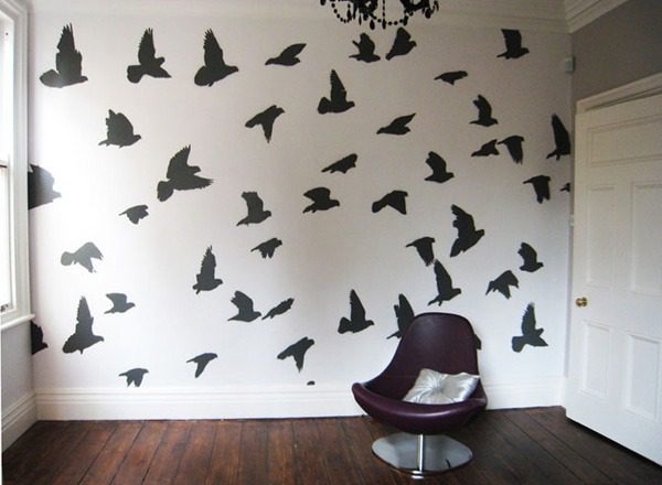 Ένας άλλος τρόπος για να διακοσμήσετε τον τοίχο με μόνο χρώμα είναι στένσιλ. Οι καλλιτέχνες του δρόμου τις χρησιμοποιούν εδώ και δεκαετίες και τα αποτελέσματα μπορεί να είναι αρκετά όμορφο. Μπορείτε να κάνετε σχέδια για οτιδήποτε, χαριτωμένες σιλουέτες, πορτραίτα των ειδώλων σας ή αγαπημένων σας, αντικείμενα pop-art ή να μετατρέψετε ολόκληρη την επιφάνεια σε εσωτερική τοιχογραφία.