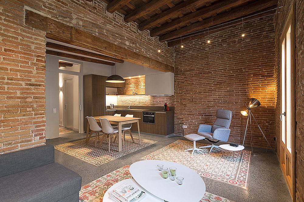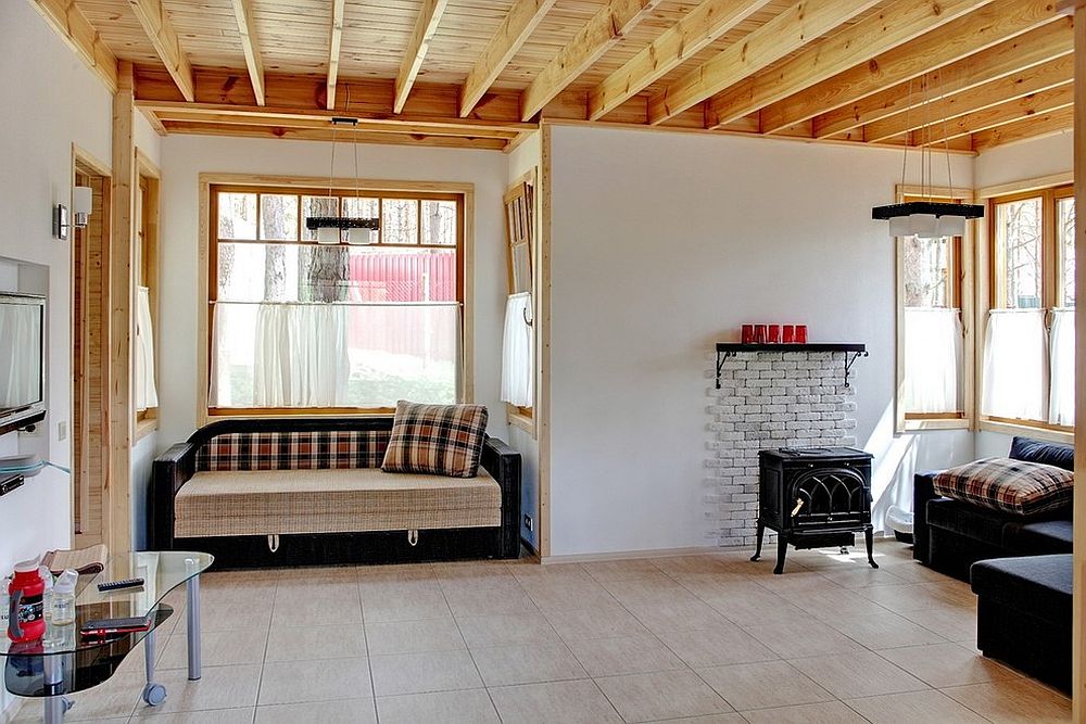 Εκτεθειμένα δοκάρια οροφής για ένα πιο ζεστό σαλόνι