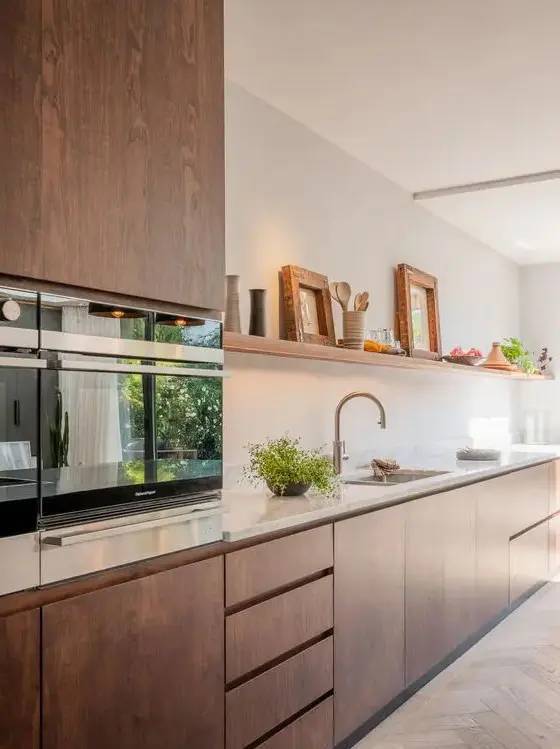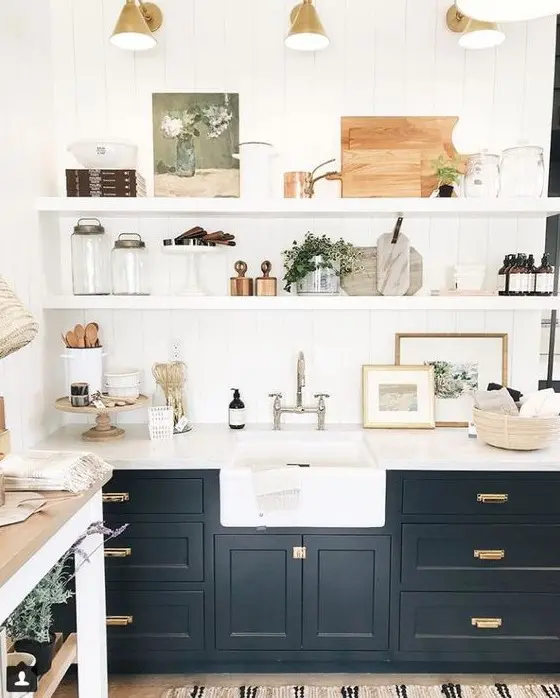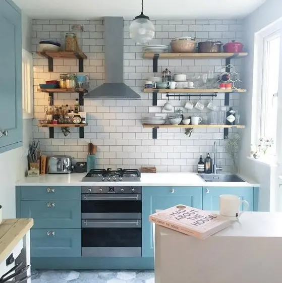 Είτε προτιμάτε πολλά ανοιχτά ράφια είτε για ένα μόνο και μια εξαιρετικά μακριά προεξοχή σε όλο τον τοίχο, θα είναι μια ωραία ιδέα για κουζίνα. Προσθέστε απλίκες πάνω από τα ράφια ή μερικά κρεμαστά φωτιστικά και είστε έτοιμοι!
