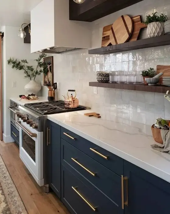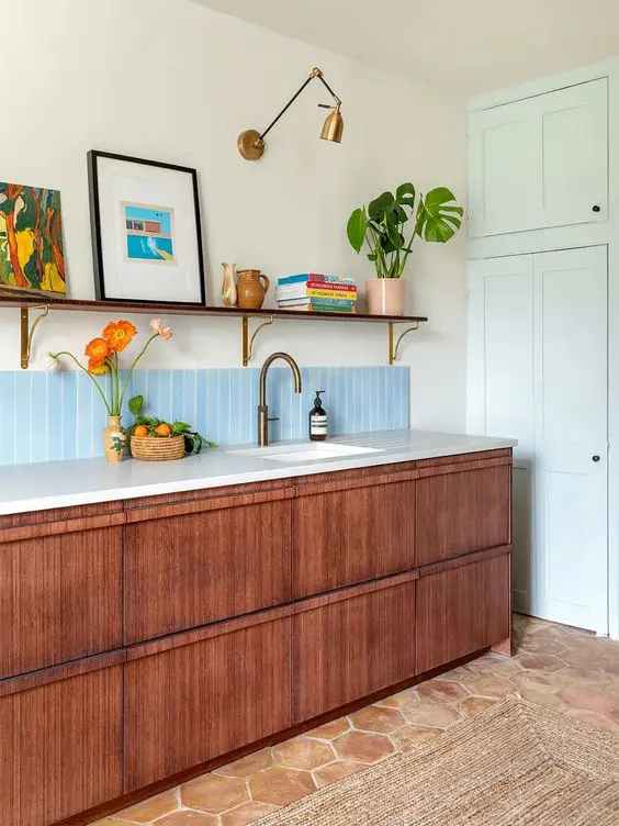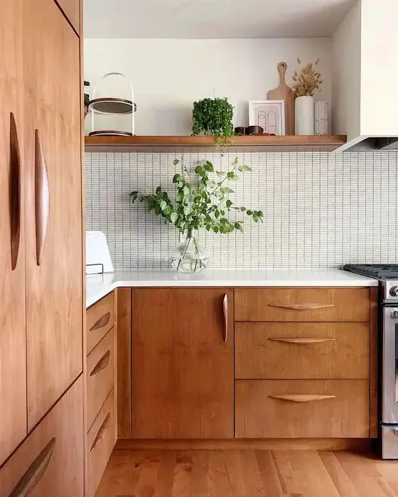 Αυτή η ιδέα ταιριάζει σε κάθε κουζίνα με οποιοδήποτε στυλ, και τα ράφια μπορεί να είναι από ξύλο, από πέτρα που να ταιριάζει με το υλικό backsplash, να ξεχωρίζουν στο σκηνικό ή να ενωθούν με αυτό.