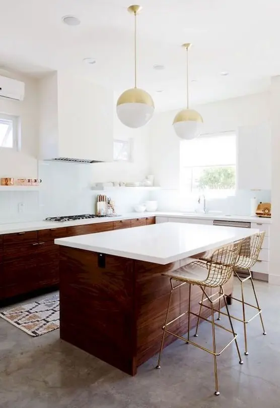 Ένα τέτοιο σχέδιο δεν είναι καινούργιο, αλλά κερδίζει ολοένα και μεγαλύτερη δημοτικότητα και πολλοί ιδιοκτήτες σπιτιού αποφασίζουν να επιλέξουν μόνο χαμηλότερα ντουλάπια προσθέτοντας ένα ντουλάπι ή μια μεγάλη νησίδα για να κάνουν τον χώρο ευάερο και γαλήνιο.