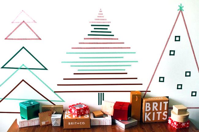 Για μια μη παραδοσιακή προσέγγιση, δημιουργήστε έναν τοίχο από χριστουγεννιάτικα δέντρα χρησιμοποιώντας ταινία washi, όπως φαίνεται παρακάτω.
