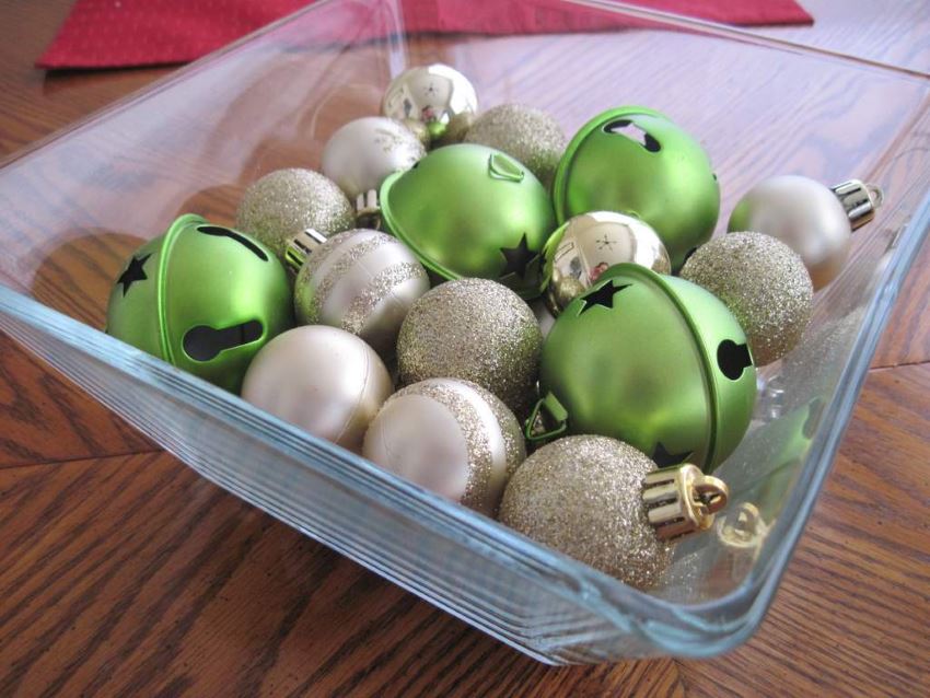 Εάν είστε καλυμμένοι από την διακόσμηση στο μπροστινό μέρος του δέντρου αλλά εξακολουθείτε να αναζητάτε μια γρήγορη κεντρική ιδέα, δοκιμάστε να προσθέσετε λάμψη με επιπλέον στολίδια. Όχι μόνο μπορείτε να τα κρεμάσετε στο παράθυρο με κορδέλα ή νήμα, αλλά μπορείτε να συσσωρεύσετε στολίδια σε δοχεία, φρουτιέρες και βάζα.