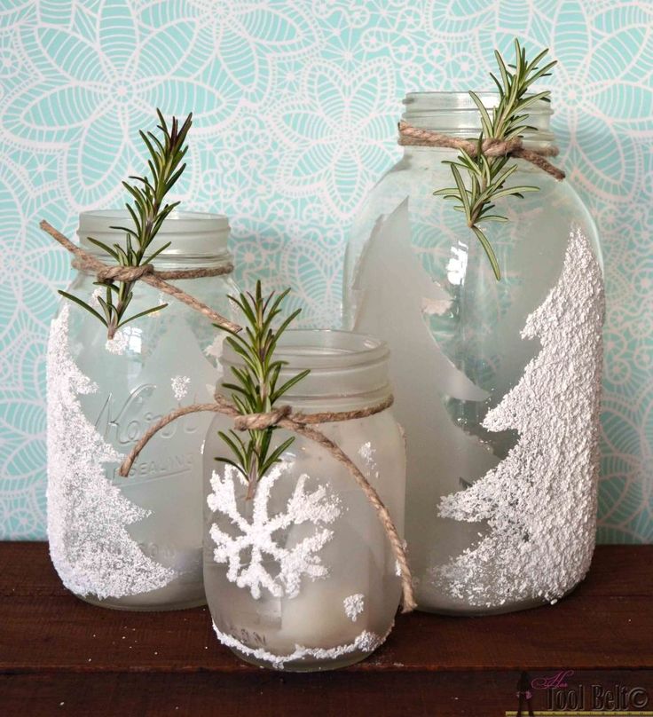 Ως μια πολύ απλουστευμένη επιλογή, θα μπορούσατε απλά να γεμίσετε μερικά βάζα με άλατα epsom και να τοποθετήσετε κεριά σε αυτά, όπως αυτά από το My Untangled Life. Μοιάζει με πραγματικό χιόνι!