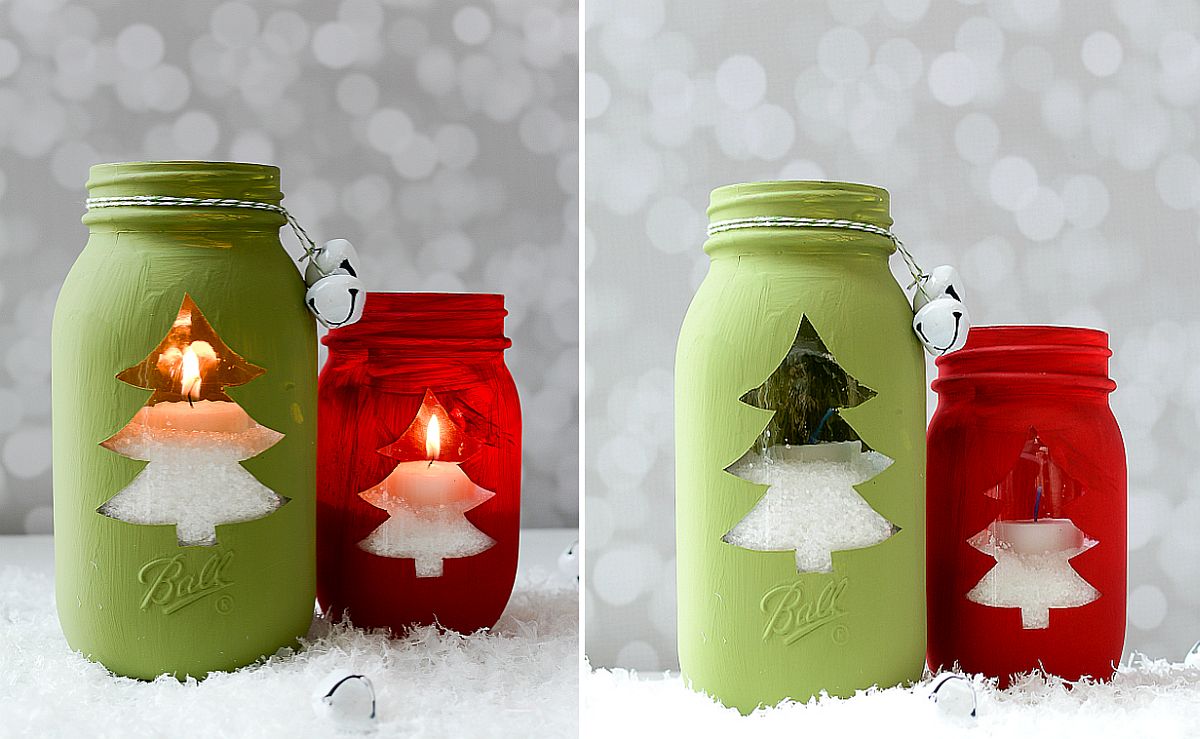 Ντύστε τα βάζα σας εορταστικά όπως η σελίδα Festive DIY Christmas Jar Candles… Η διαδικασία δεν διαρκεί περισσότερο από 10 έως 20 λεπτά. Όλα όσα χρειάζεστε εδώ είναι κεριά, βάζο, καρό κορδέλα, χρυσές κορδέλες, ασπρόμαυρα κουμπιά και μερικά χριστουγεννιάτικα στολίδια. Κλέβουν την παράσταση, ενώ παραμένουν αθόρυβες! Ένα άλλο χριστουγεννιάτικο χτύπημα είναι το Snowman Mason Jar Luminary Ornament που φέρνει τη γοητεία των κεριών στο ήδη καταπληκτικό χριστουγεννιάτικο δέντρο σας.