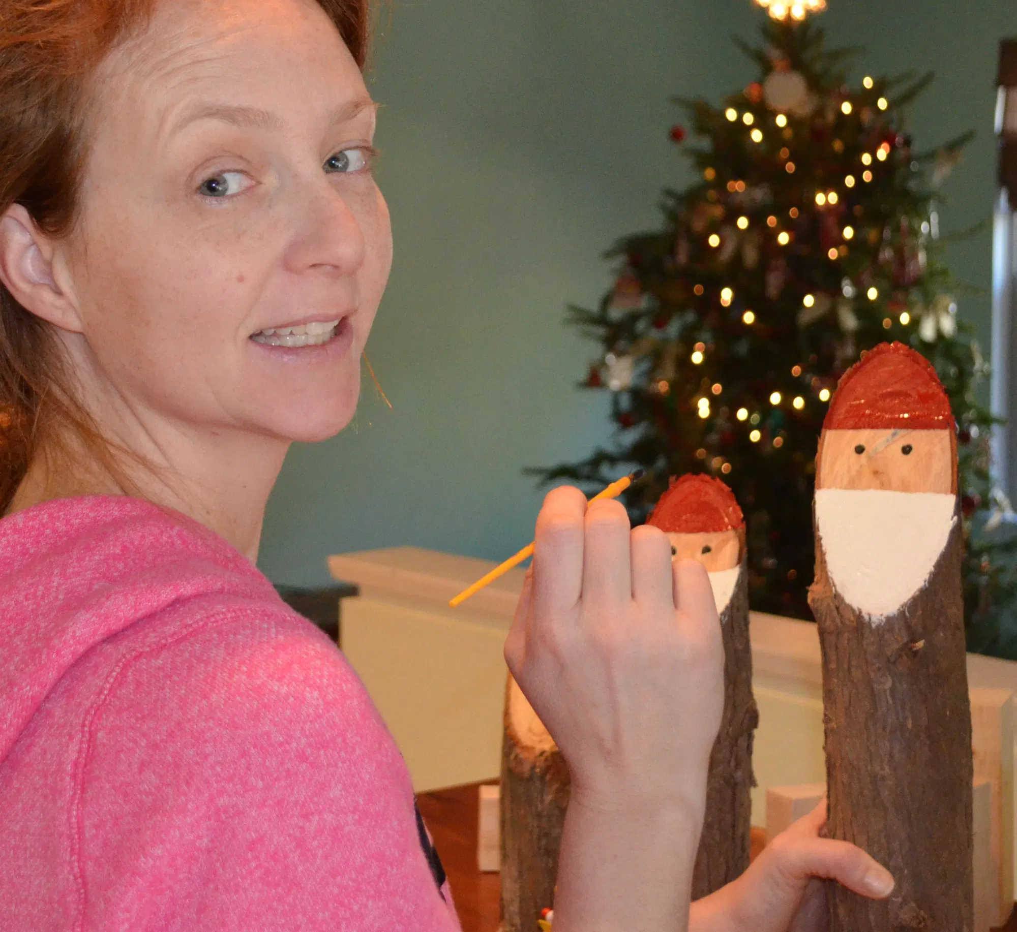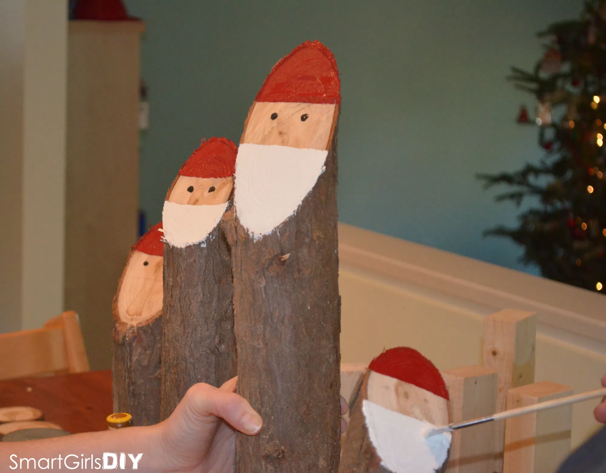 Βήμα 1: Βρείτε κορμούς ή κλαδιά διαφορετικού πάχους που μπορείτε να μεταφέρετε. Κόψτε τους σε διαφορετικά ύψη. Κόψτε το κάτω μέρος του ξύλου σε ευθεία ώστε να μπορεί η κατασκευή σας να σταθεί και το επάνω μέρος σε γωνία των 45 μοιρών. Στο επάνω μέρος θα ζωγραφίσετε τον Άγιο Βασίλη.