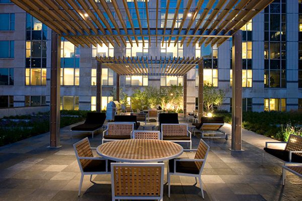 Οι χώροι καθισμάτων είναι τα κυριότερα σημεία αυτού του roof garden με κλασική εμφάνιση.