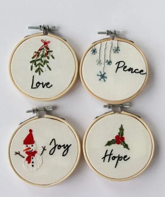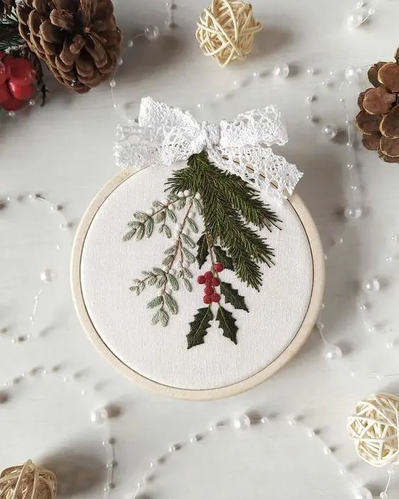 Νομίζουμε πως ήρθε η ώρα να πάρετε τα στεφάνια κεντήματος, το τσέρκι κεντήματος ή το το τελάρο κεντήματος από την γιαγιά σας. Με αυτό το απλό υλικό θα φτιάξετε υπέροχα Χριστουγεννιάτικα διακοσμητικά. Θα αρχίσετε να κεντάτε και να στολίζετε το κέντημα σας με οτιδήποτε υλικό σας αρέσει.