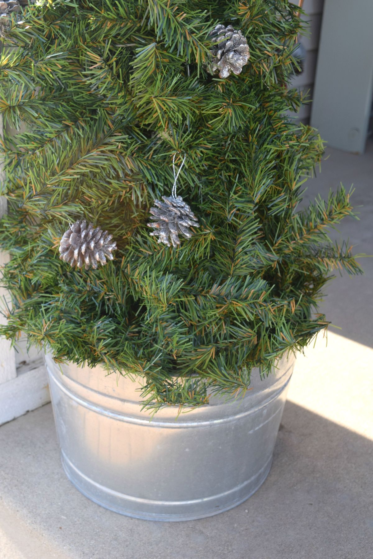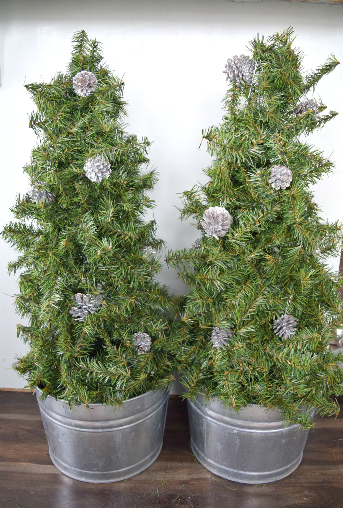 Τοποθετήστε τα δεντράκια που φτιάξατε σε κουβάδες, κάτι που τα βοηθάει να είναι ασφαλή και να στέκονται όρθια. Οι κάδοι προσθέτουν επίσης ένα άλλο σχεδιαστικό στοιχείο. Τα δίνουν μια πιο ρουστίκ αίσθηση.