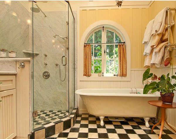 Μπορεί να φαίνεται κλασικό, αλλά τα παράθυρα κοντά στην μπανιέρα είναι αποτελεσματικά για να αφήσουν τον επισκέπτη να αισθάνεται την άνεση και την ευκολία να κάνει ένα μπάνιο εδώ.