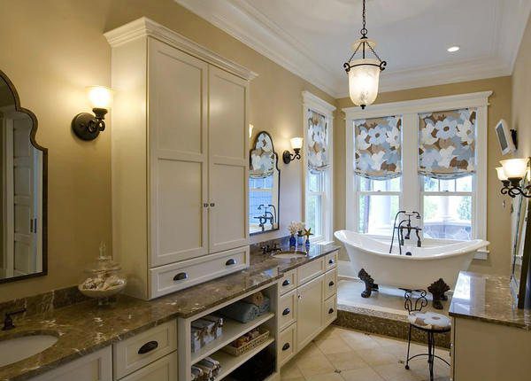 Τα χρώματα μπεζ και κρεμ δίνουν μια φυσική εμφάνιση. Τα ουδέτερα χρώματα είναι από τα βασικά χρώματα όπου μπορούμε να αναμίξουμε ή να συνδυάσουμε με άλλα φωτεινά ή σκούρα χρώματα και έντονα αξεσουάρ μέσα στο μπάνιο.