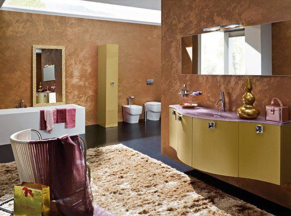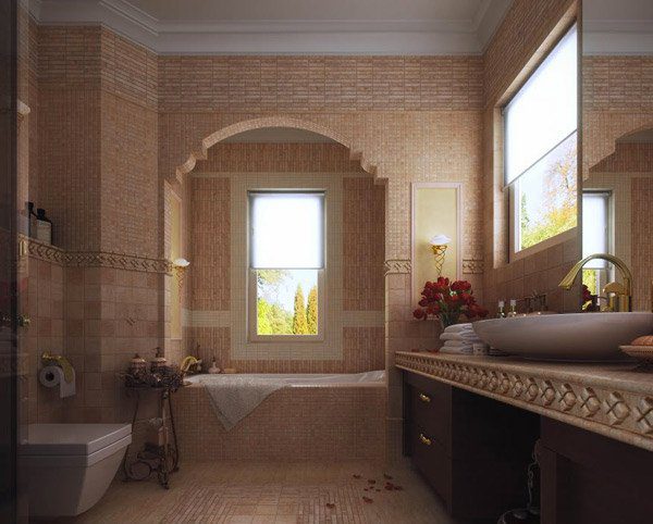 Ιδιαίτερα πολυτελές μπάνιο με καφέ χρώματα, εμπνευσμένο από περιοχές της ανατολής.