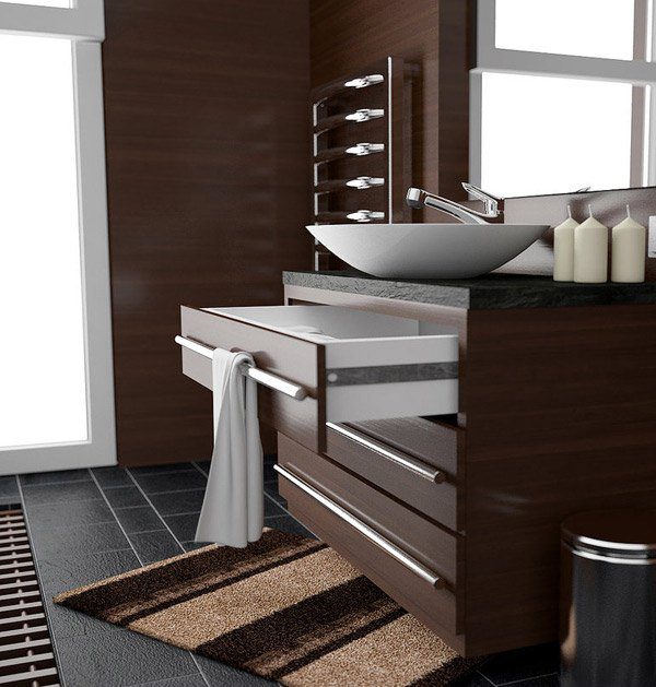 #4 Μπάνιο με διακόσμηση σκουρόχρωμου ξύλου
