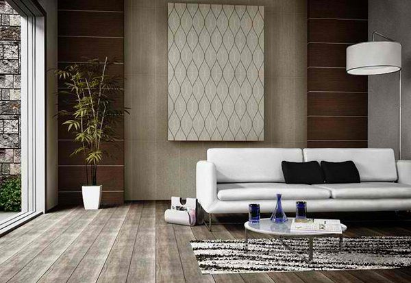 Διακόσμηση με ξύλο στον τοίχο του σαλονιού