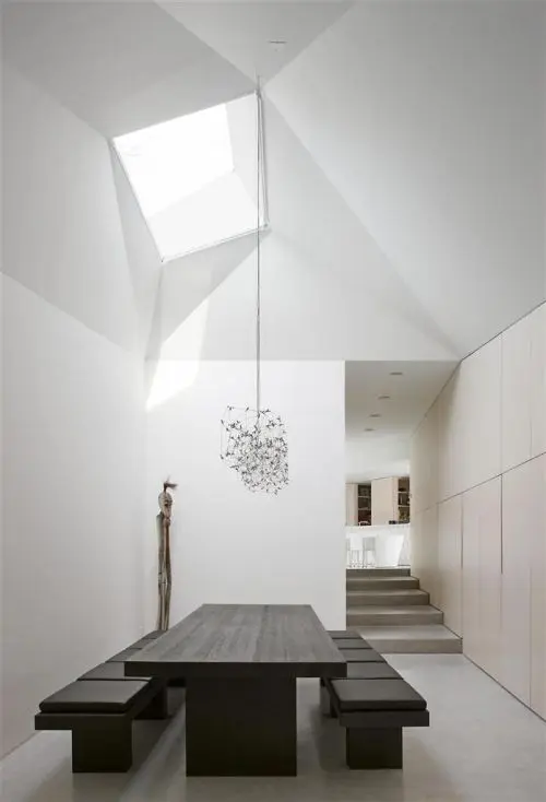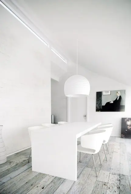 Επιλέξτε ουδέτερα χρώματα για μια μινιμαλιστική τραπεζαρία.