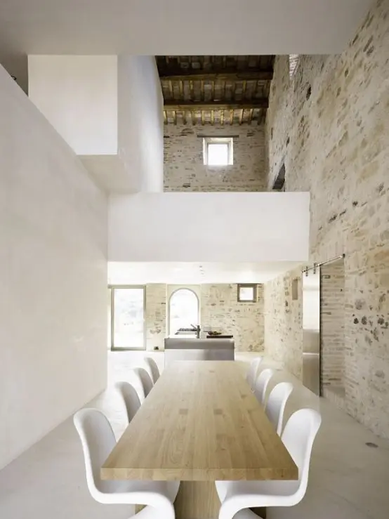 Φυσικά υλικά, ουδέτερα φινιρίσματα και καθαρές γραμμές θα ενισχύσουν τη συνολική μινιμαλιστική ατμόσφαιρα της τραπεζαρίας σας.