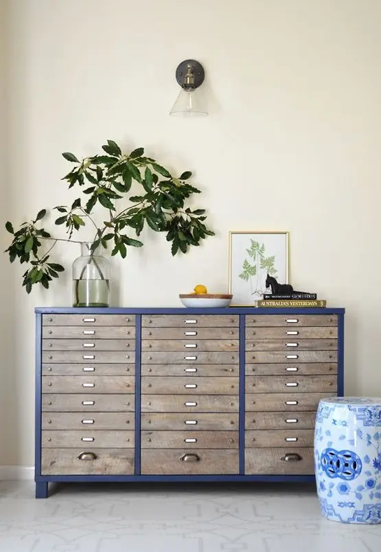 Ένα vintage ντουλάπι αρχείων είναι ένα τέλειο τραπέζι κονσόλας με άφθονο χώρο αποθήκευσης για κάθε είσοδο. Ένα τέτοιο κομμάτι θα φέρει αμέσως vintage γοητεία και κομψότητα στο χώρο κάνοντάς τον μοναδικό. Εξάλλου, θα έχετε πολύ αποθηκευτικό χώρο, αυτό είναι σίγουρο.