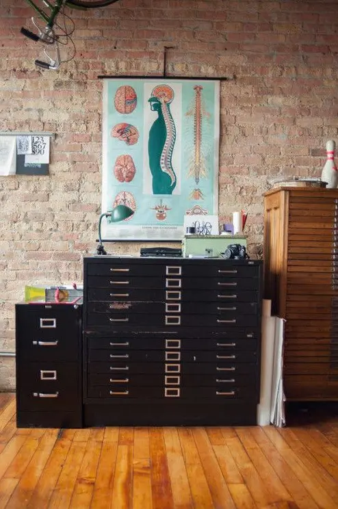 Πώς αλλιώς μπορείτε να χρησιμοποιήσετε ένα vintage ντουλάπι για αρχεία; Πρώτα απ ‘όλα, ως μονάδα αποθήκευσης σε ένα οικιακό γραφείο. Αυτή είναι ίσως η πιο φυσική εφαρμογή αυτού του κομματιού σε όλο το σπίτι σας. Δεύτερον, ως κινητή νησίδα κουζίνας. Τοποθετήστε το σε τροχούς και προσθέστε πάγκο και voila! Τρίτον, ως κομοδίνο ή συρταριέρα στην κρεβατοκάμαρά σας. Υπάρχουν πολλοί ακόμη τρόποι για να χρησιμοποιήσετε vintage ντουλάπια για αρχεία στα σπίτια, ρίξτε μια ματιά παρακάτω!