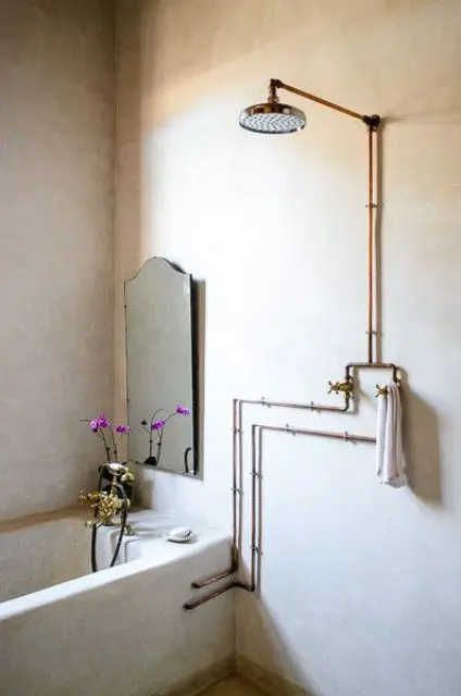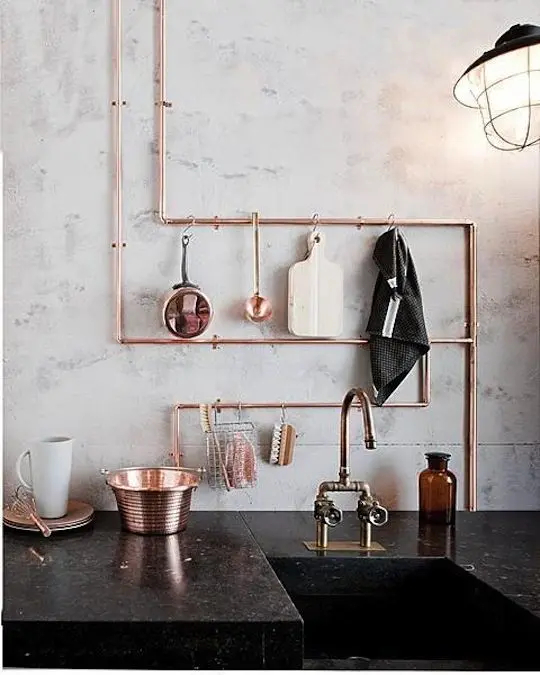 Οι μεταλλικοί σωλήνες φαίνονται υπέροχοι προσθέτοντας μια industrial chic (βιομηχανική) πινελιά στο εσωτερικό του σπιτιού σας. Πιστεύουμε πως οι χάλκινοι σωλήνες είναι πολύ κομψοί και δεν χρειάζεται να τους κρύβεις στα μπάνια ή τις κουζίνες, αλλά ίσα ίσα να τις φέρετε στο προσκήνιο και να τις κάνετε να αποτελούν βασικό κομμάτι της διακόσμησης σας!