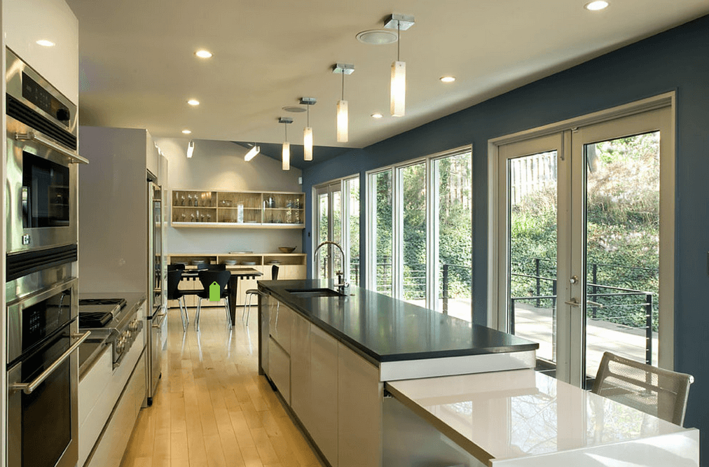 Επίσης μπορεί στον πάγκο της κουζίνας να τοποθετηθεί η ηλεκτρική κουζίνα. Απαραίτητα στην περίπτωση αυτή είναι η τοποθέτηση ενός κρεμαστού απορροφητήρα πάνω από τα μάτια της ηλεκτρικής κουζίνας.
