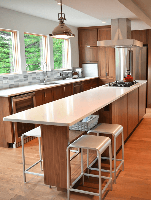 Η χρησιμότητα του πάγκου κουζίνας εκτός από αποθηκευτικός χώρος (αν βολεύει), είναι ο χώρος για ένα γρήγορο σνακ ή ακόμα και για το μεσημεριανό και βραδινό οικογενειακό τραπέζι. Οπότε πρέπει να υπάρχει αρκετός χώρος και για τα σκαμπό που θα κάθετε η οικογένεια γύρω από τον πάγκο.