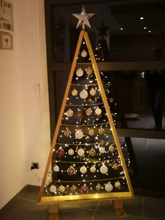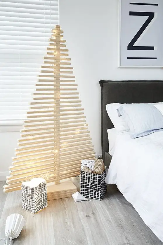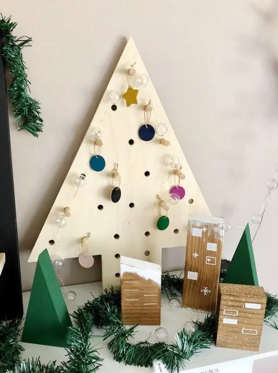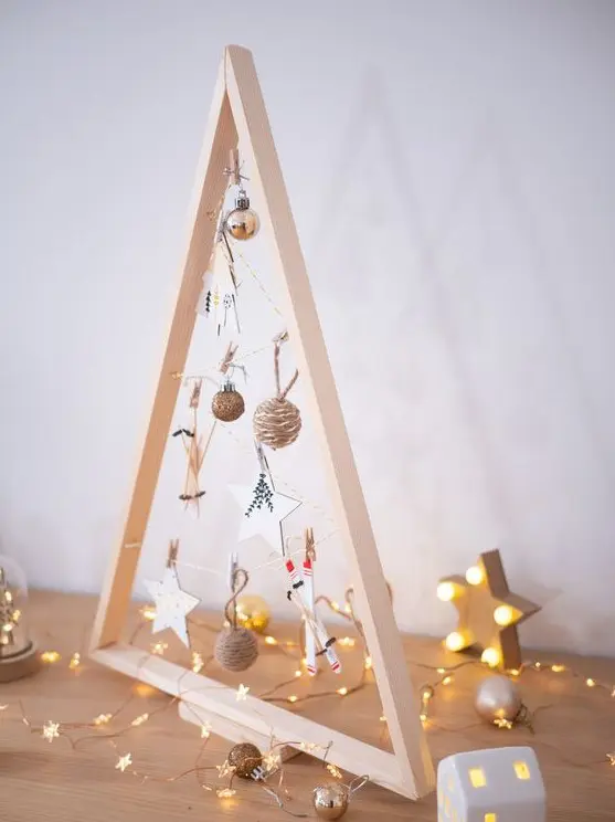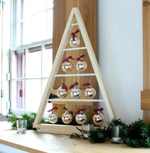 Το ξύλο και το κόντρα πλακέ ήταν πάντα εξαιρετικά υλικά για να δημιουργήσετε κάτι, συμπεριλαμβανομένου ενός χριστουγεννιάτικου δέντρου. Φτιάξτε μια σιλουέτα ενός δέντρου, χρησιμοποιήστε ξυλάκια, κλαδιά και φέτες δέντρου ανάλογα με το σχέδιο που θέλετε και το στυλ που έχετε.