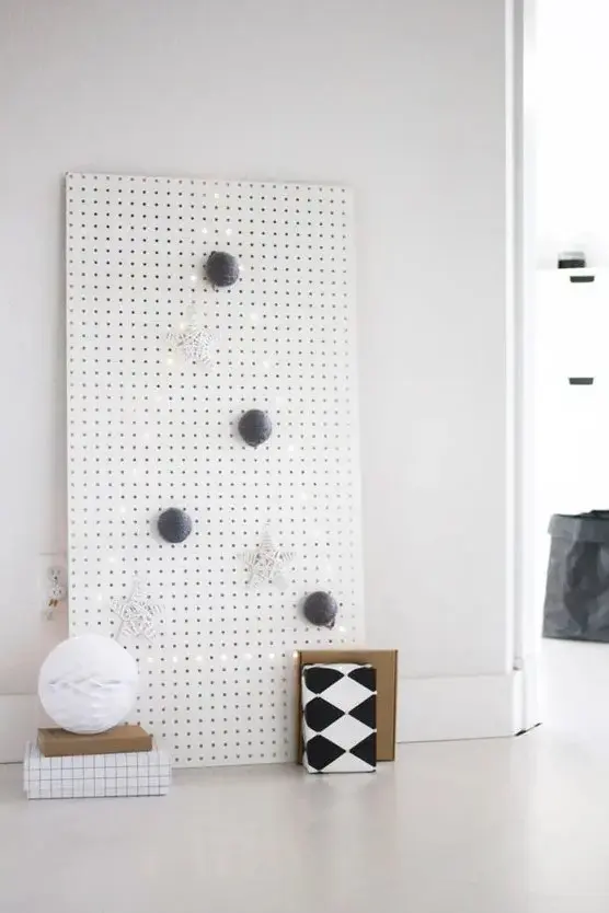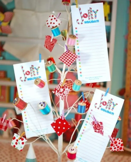 Αυτό που πρέπει να κάνετε είναι να στερεώσετε μερικά πράγματα στον τοίχο σχηματίζοντας ένα δέντρο. Αυτά μπορεί να είναι στολίδια, φωτάκια, διάφορα μικροπράγματα, μονογράμματα, παιχνίδια και ούτω καθεξής.