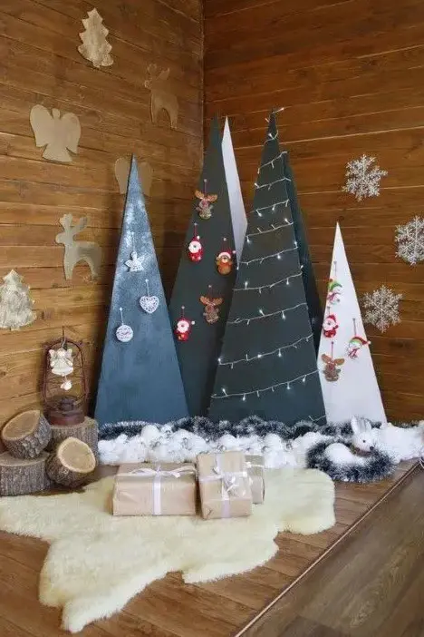 Χριστουγεννιάτικα δέντρα wall art  είναι μια άλλη cool ιδέα και έχει προφανή πλεονεκτήματα σε σύγκριση με τα επιτοίχια δέντρα, μιας και είναι φορητή.
