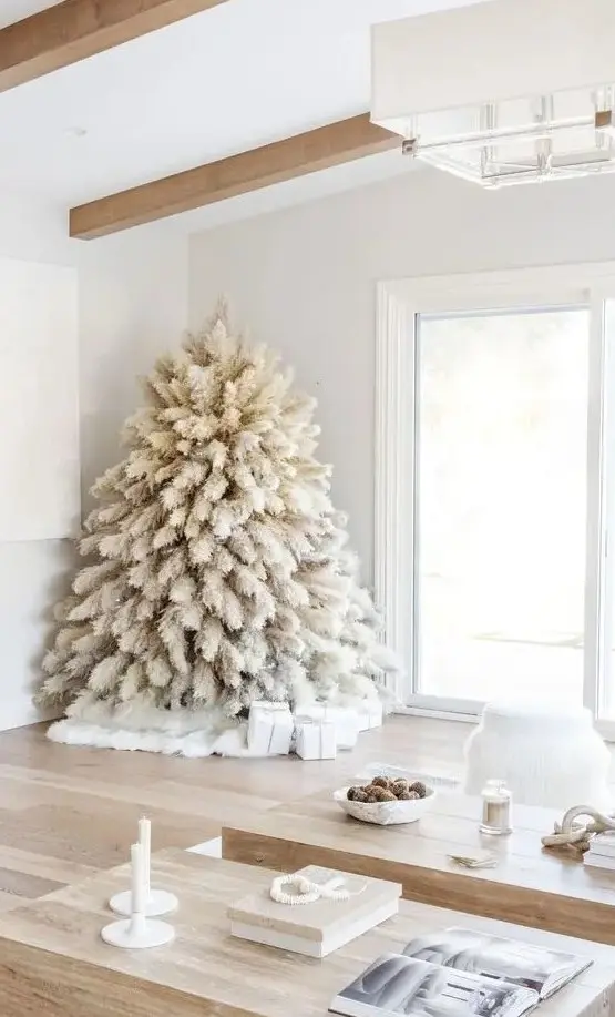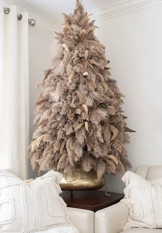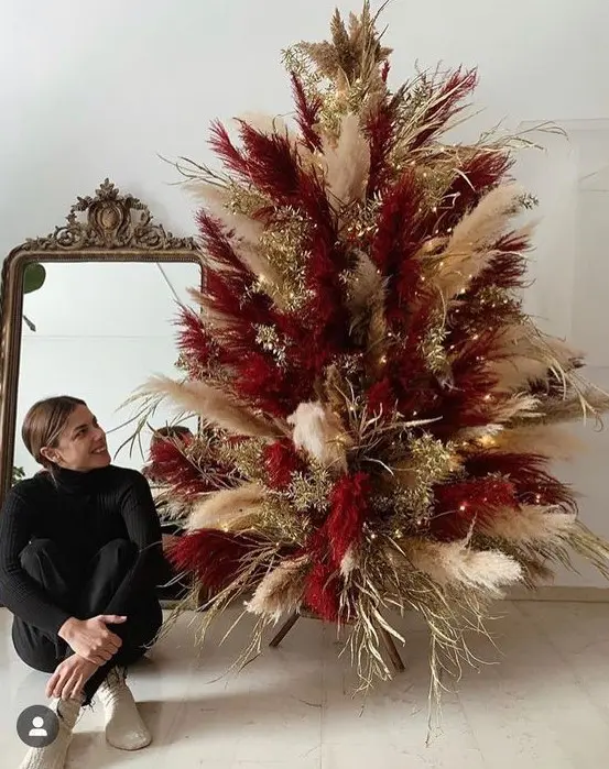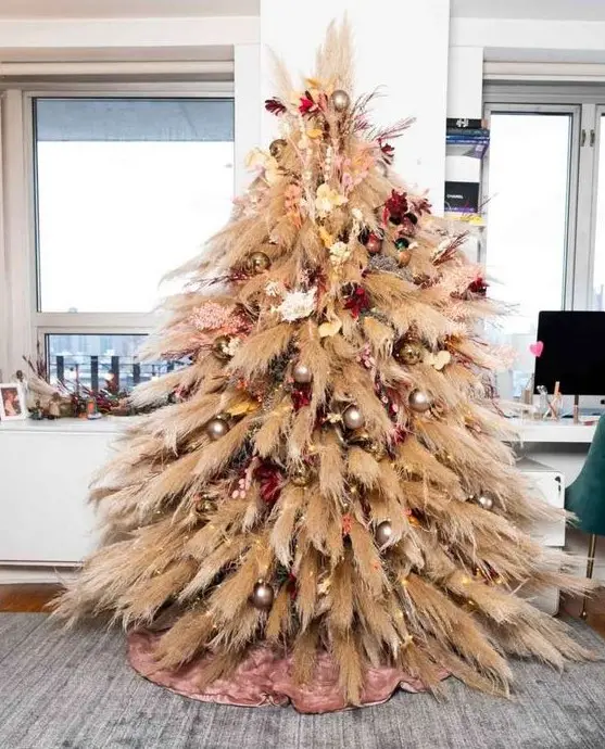 Το πιο hot trend της φετινής χρονιάς, τα χριστουγεννιάτικα δέντρα με γρασίδι pampas, είναι υπέροχα για boho, αλλά ακόμα και για μοντέρνους χώρους. Μπορούν να μη διακοσμηθούν καθόλου ή να διακοσμηθούν με λουλούδια, πρασινάδες, φωτάκια, ακόμη και χριστουγεννιάτικα στολίδια, και είναι βέβαιο ότι θα γίνουν τολμηρός σύντροφος αυτές τις γιορτές.