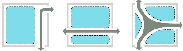 - Σκεφτείτε πως θα περπατάτε. Αφήστε χώρο ανάμεσα στα έπιπλα για να περνάτε. Στην παρακάτω εικόνα με γκρι είναι οι διάδρομοι που πρέπει να αφήσετε και με μπλε εκεί που θα έχετε τα έπιπλα σας.