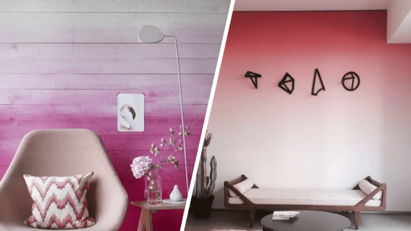 Σκεφτείτε να δοκιμάσετε τοίχους με κλίση, όταν ένα χρώμα ρέει ελαφρώς σε ένα άλλο, χωρίς λευκά μέρη, αυτή είναι μια άλλη τολμηρή ιδέα που θα προσθέσει ακόμα περισσότερο χρώμα ή χρώματα στο χώρο σας.